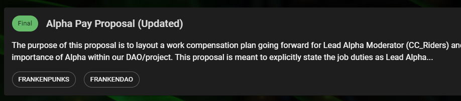 Once you submit a ticket our DAO Lead will work with you to formulate your proposal so that it meets the Franken DAO mission.